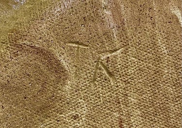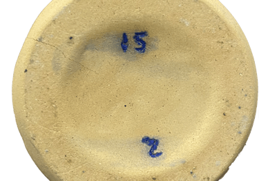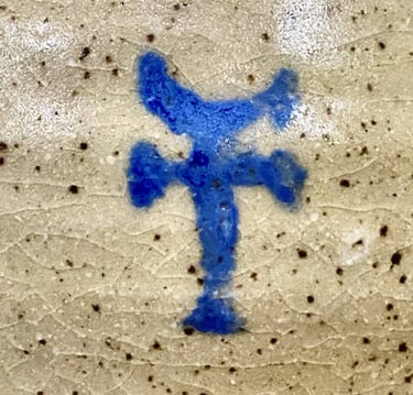 Most have the inscriptions and impressed areas filled in with cobalt blue glaze or even with a Manganese-like glaze. Found on wares made with tan, Manganese stoneware. Few were made with mixed clays, earthenwares and stonewares. 2014 was a prolific year for the pottery.