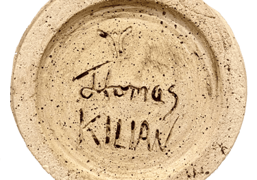There are very few wares with this maker's mark, of the initials of 'T' and 'K', for Thomas Kilian which is hand-inscribed. These pots were the first pots to ever be crafted. They are largely handbuilt works.