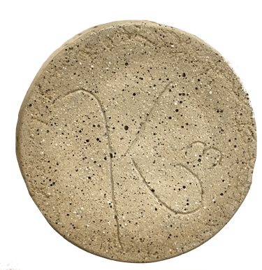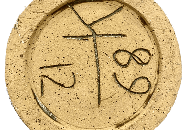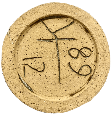 Maker's mark is a ligature of 'T' and 'K', which is hand-inscribed. Year inscribed with a two-digit year code often on the left, with the number of the pot thrown that year on the right. Found on wares made with manganese stoneware.