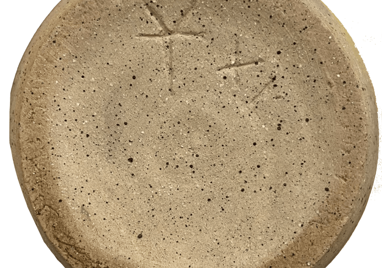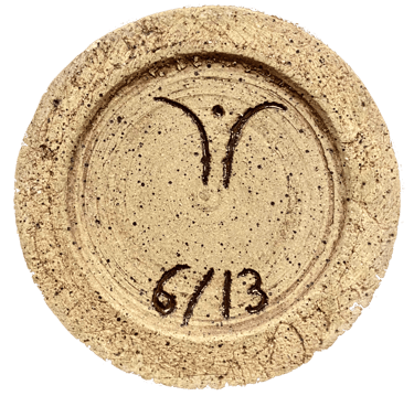 Year inscribed with a two-digit year code, with the number of the pot thrown that year opposite of it. These wares are few. They were made from earthenware clay (Dubar bog clay) hand-dug in Columbia, NC, mixed with a tan stoneware.