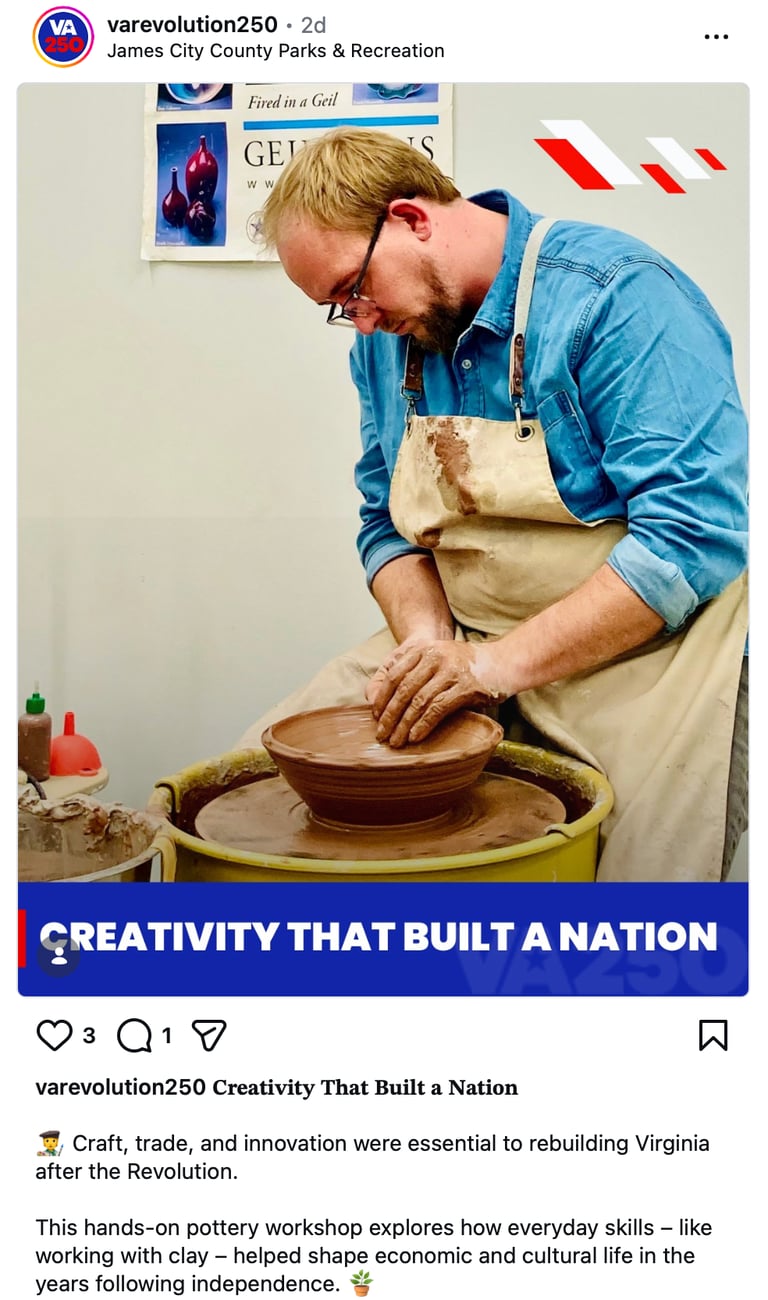 KilianWare Pottery is proud to be a Commemorative Partner of VA250—the Virginia American Revolution 250 Commission. Of the thirteen original colonies, none played as fundamental a role as Virginia in the formation of our country. From the ideas that inspired it, to the battlefields that decided it, there is simply no America without it. As we mark 250 years of Independence, now is the perfect time for you to reconnect with your country in the place that made it possible. Please join us at VA250.org