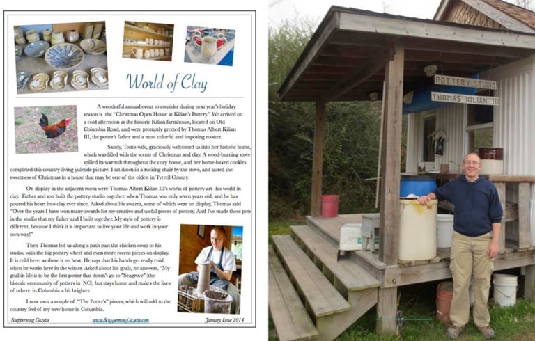 A wonderful annual event to consider during next year's holiday season is the "Christmas Open House at Kilian's Pottery:" We arrived on a cold afternoon at the historic Kilian farmhouse, located on Old Columbia Road, and were promptly greeted by Thomas Albert Kilian Ill, the potter's father and a most colorful and imposing rooster.